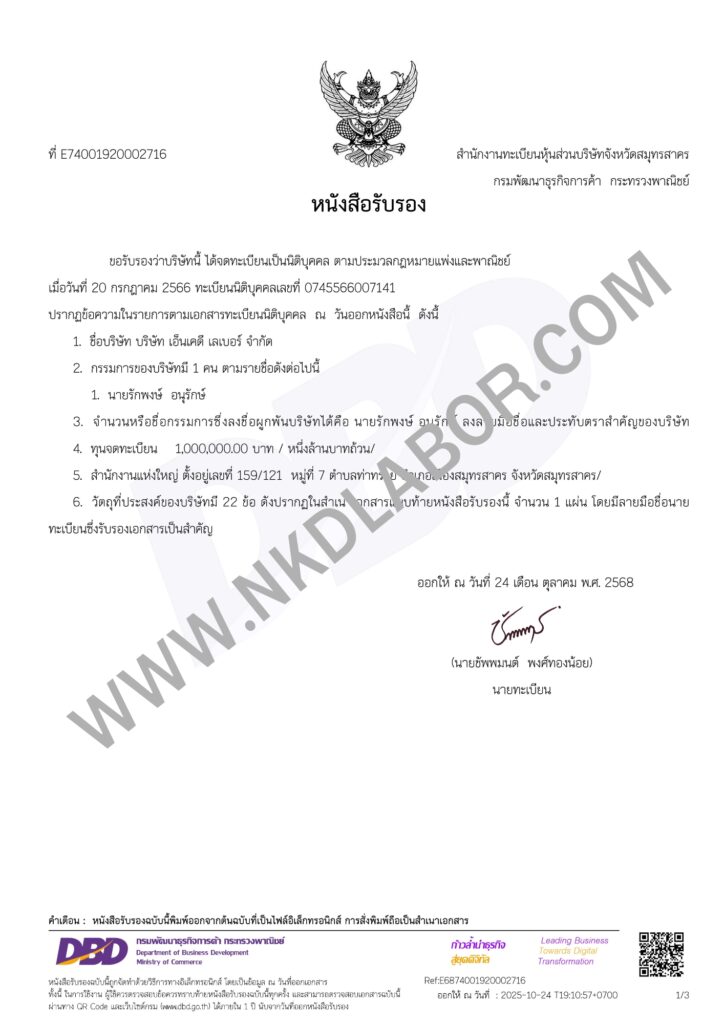 บริษัทได้จดทะเบียนประกอบธุรกิจถูกต้องตามกฏหมายมีตัวตนมั่นใจได้